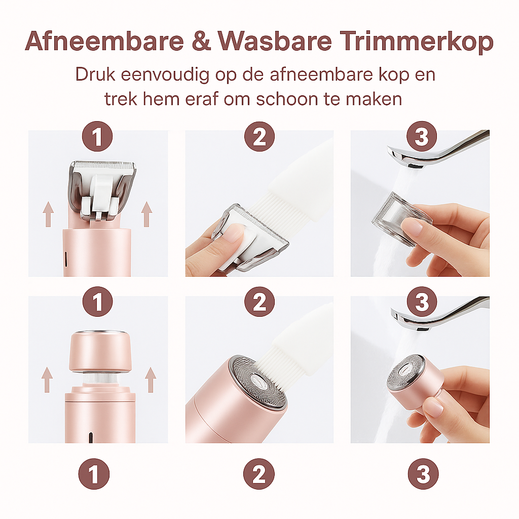 Eenvoudig onderhoud: Afneembare, afwasbare scheerkop en IPX7 waterdicht ontwerp voor nat of droog scheren.