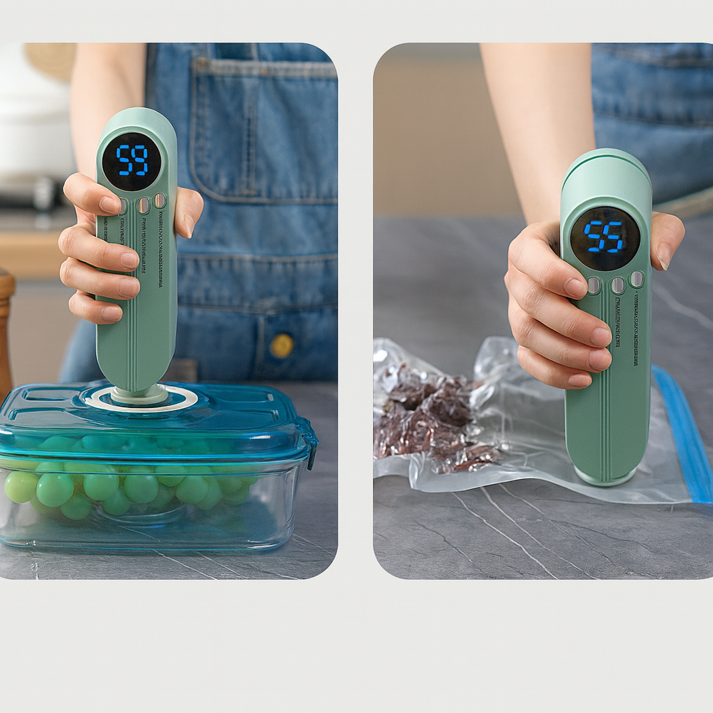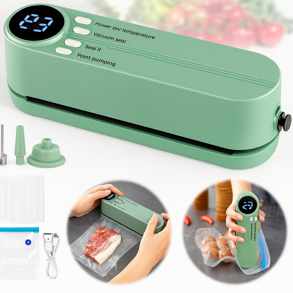 Ben je het zat om eten weg te moeten gooien omdat het snel bederft? Met de Sealmate Mini Vacuümmachine met intelligente temperatuurregeling blijven jouw ingrediënten tot wel 5x langer vers. Zo bespaar je geld, verminder je voedselverspilling en geniet je altijd van smaakvolle, gezonde maaltijden. Dankzij de krachtige vacuümpomp en slimme 3-in-1 functies verwijder je in één druk op de knop de lucht uit de zak, sluit je hem luchtdicht af en wordt de juiste temperatuur behouden. Of het nu gaat om vlees, vis, groenten of restjes van gisteren: jouw eten blijft heerlijk vers en vol van smaak. En dat is nog niet alles, dit compacte apparaat kan méér dan alleen vacumeren en sealen. Je kunt er eenvoudig lucht mee wegzuigen of juist oppompen. Ideaal voor het oppompen van een bal, luchtmatras of andere opblaasbare items. Eén apparaat, eindeloos veel mogelijkheden.
