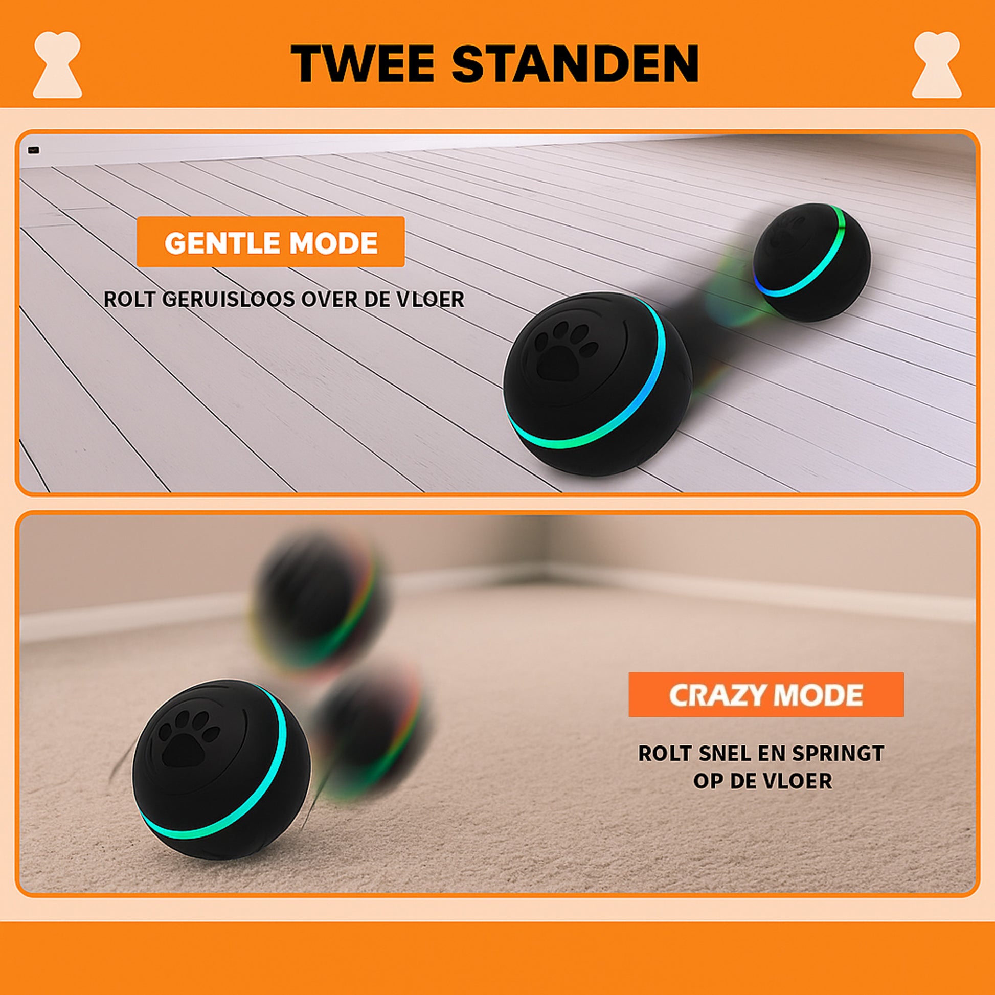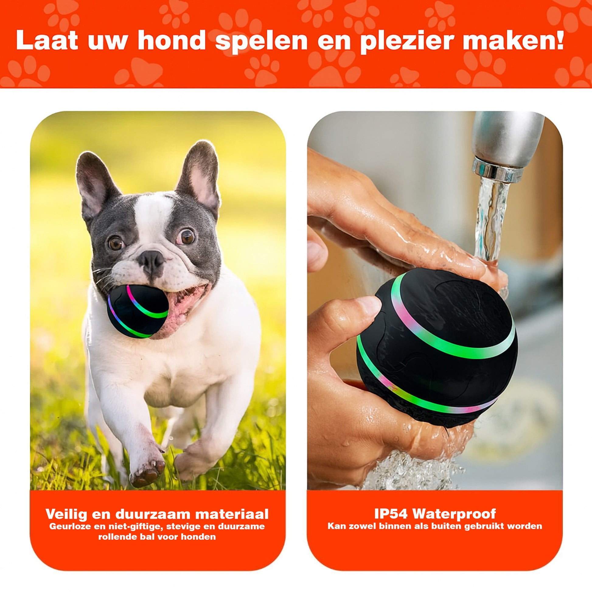 Met geïntegreerde bewegingssensoren stuitert, rolt en huppelt deze bal vanzelf, ideaal om je hond actief en scherp te houden.